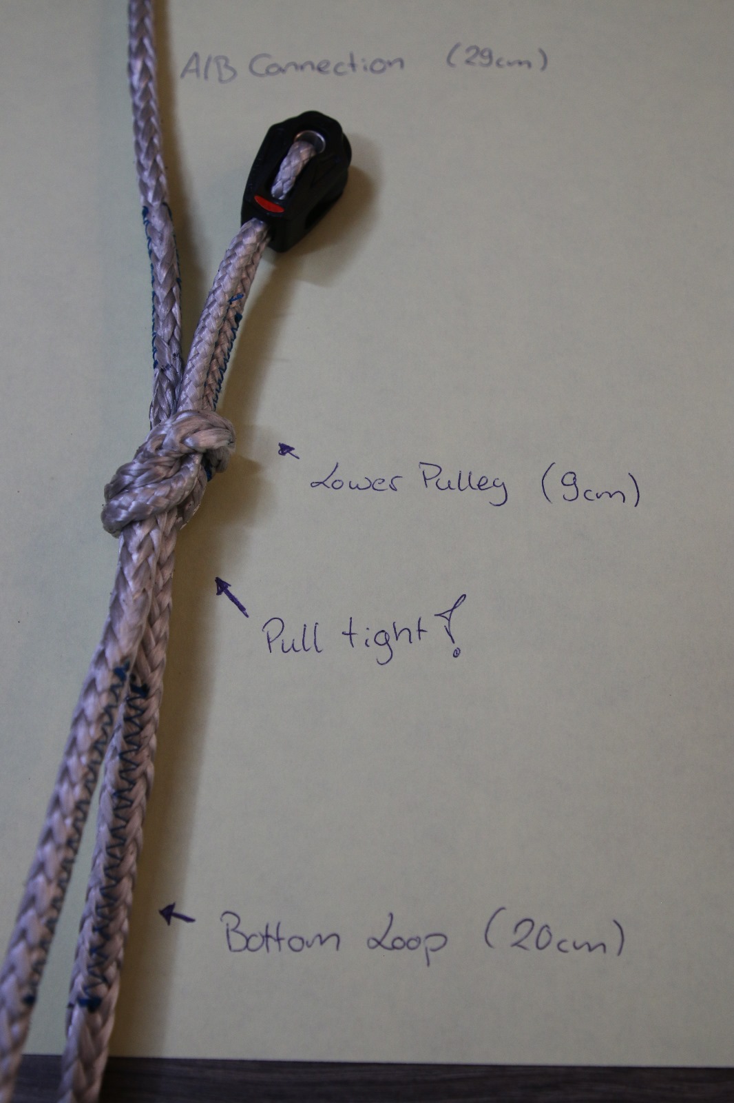 7 connecting the Bottom loop with the A/B Connection and the lower pulley