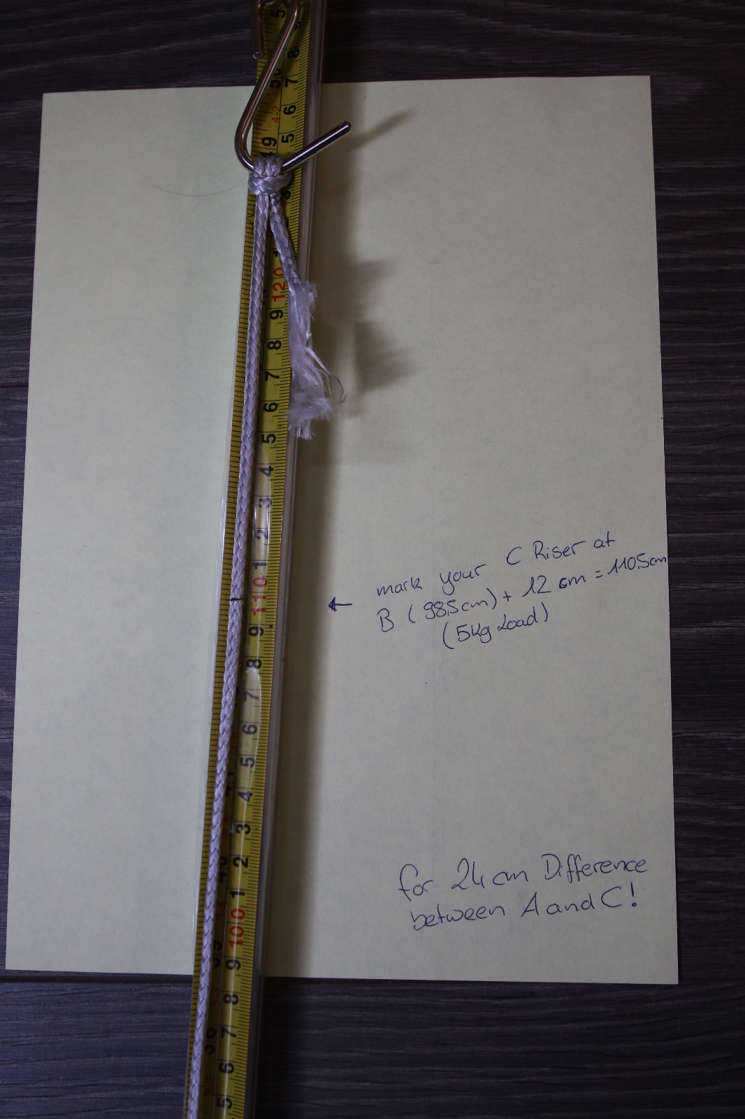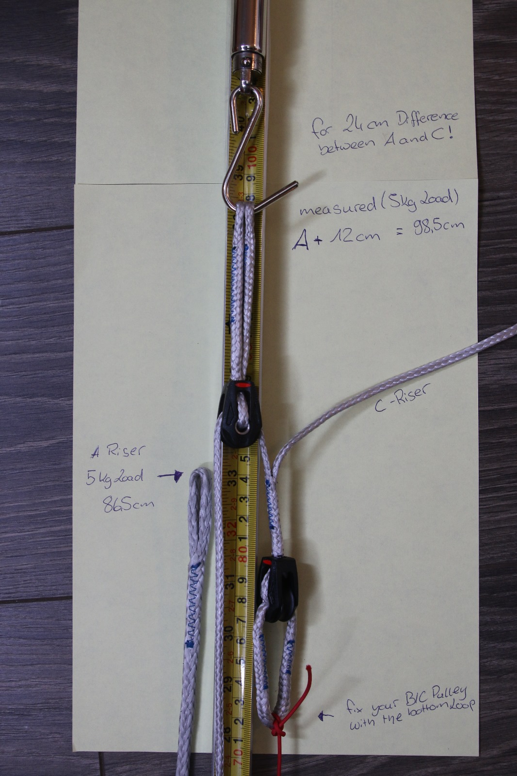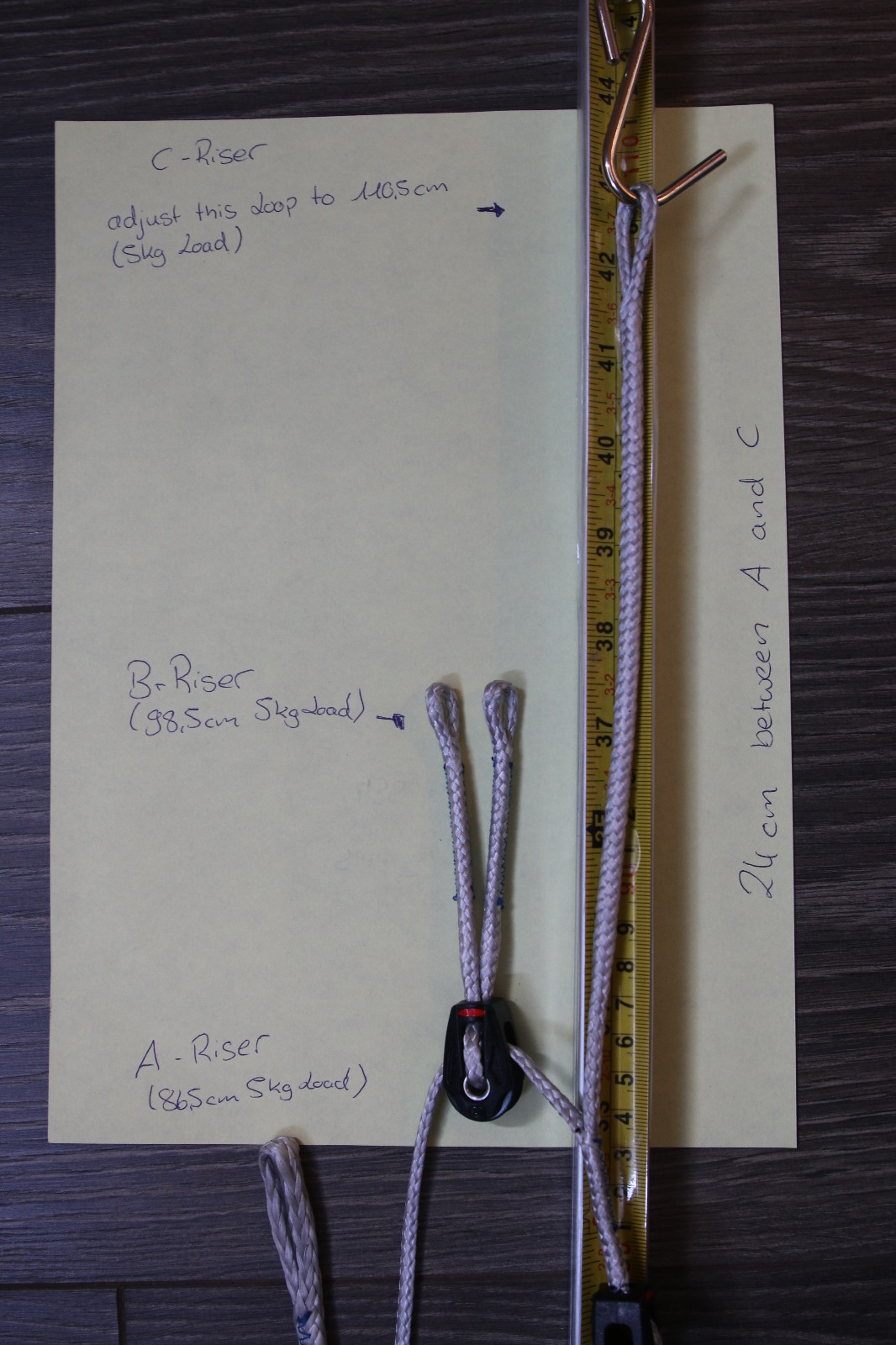 24 now measure the A-Riser (5kg load) with 5mm Dyneema ist around 86,5cm