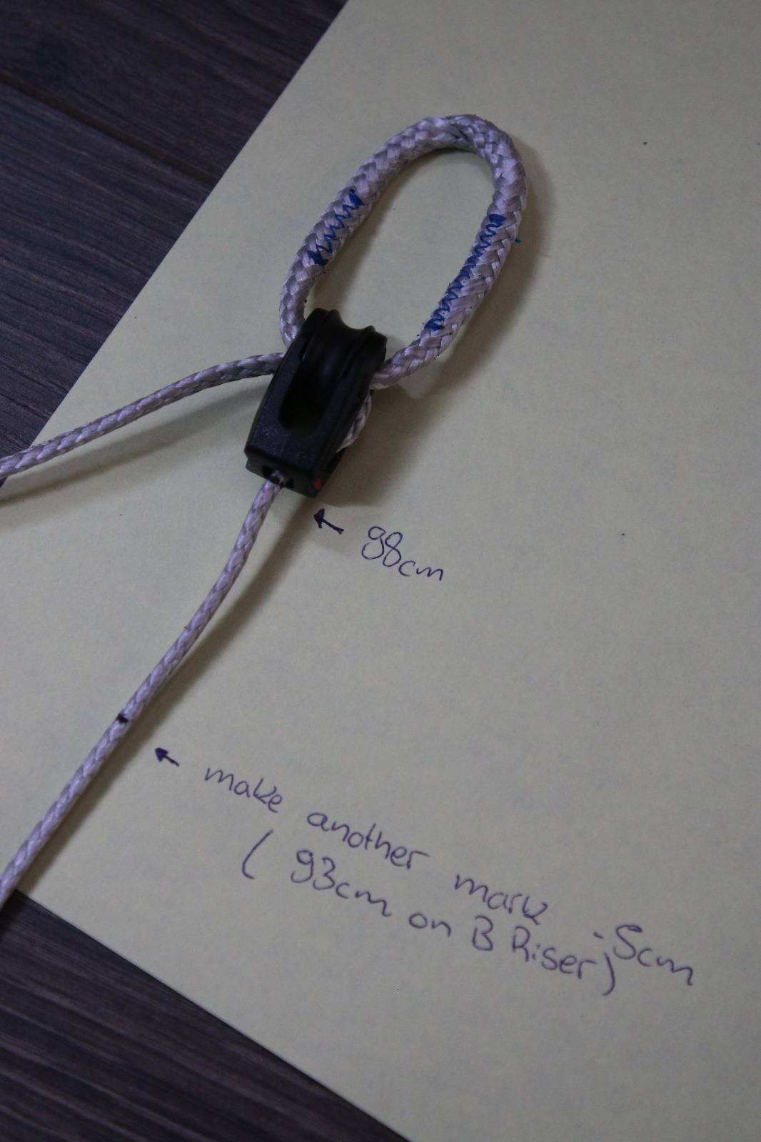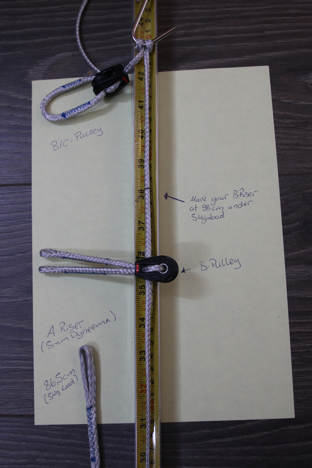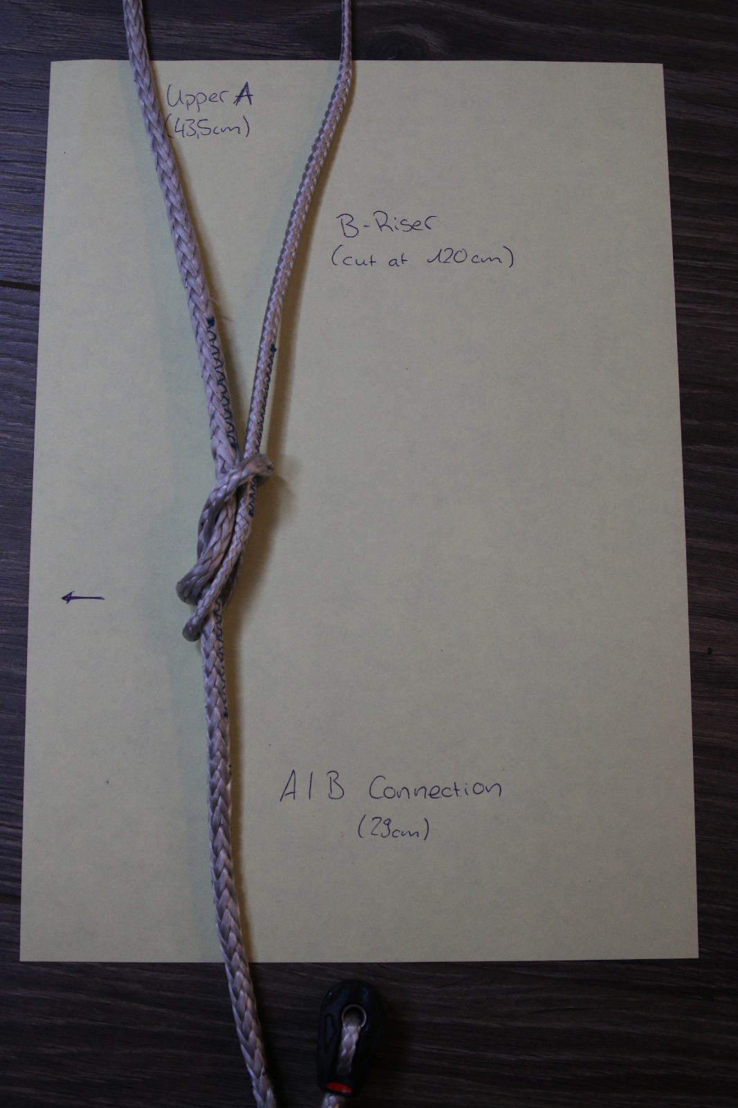 24 now measure the A-Riser (5kg load) with 5mm Dyneema ist around 86,5cm