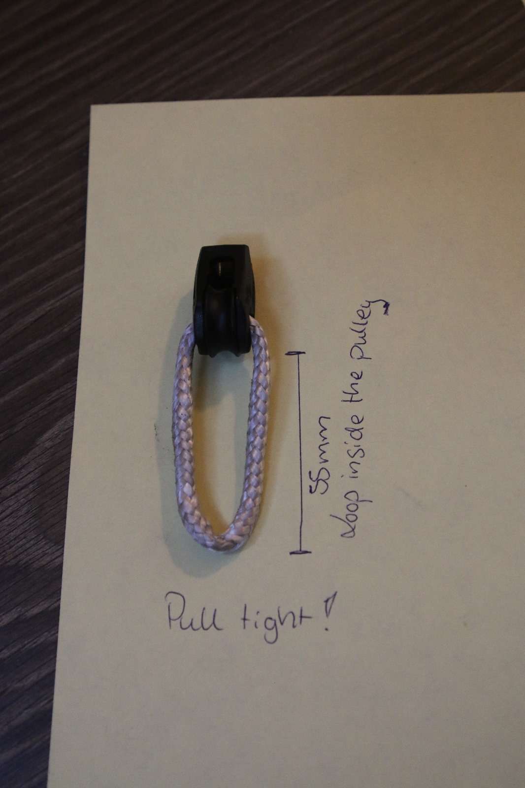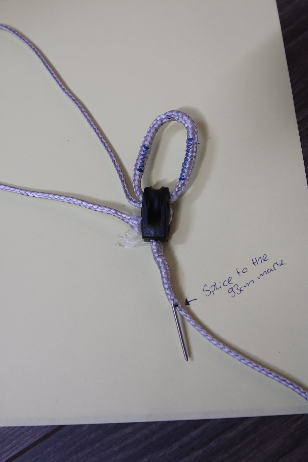16 splice a loop inside the pulley
