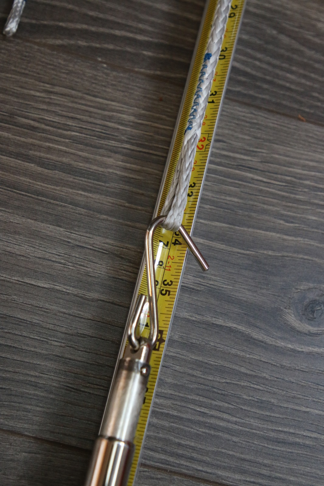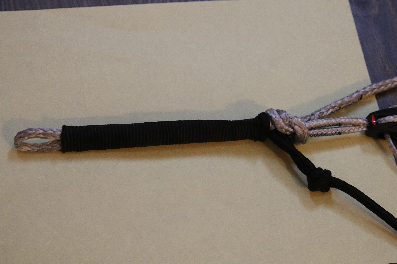 this part is really tight on 4mm dyneema but it fits when the loop is