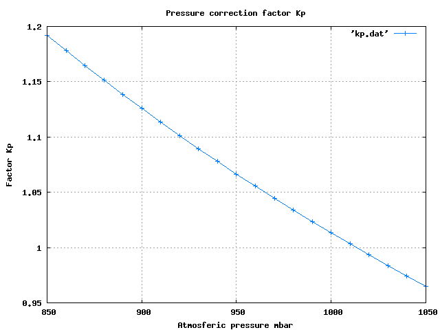 ![]() | P(mbar) Kp 850 1.192059 860 1.178198 870 1.164655 880 1.151420 890 1.138483 900 1.125833 910 1.113462 920 1.101359 930 1.089516 940 1.077926 950 1.066579 960 1.055469 970 1.044588 980 1.033929 990 1.023485 1000 1.013250 1010 1.003218 1020 0.993382 1030 0.983738 1040 0.974279 1050 0.965000 |