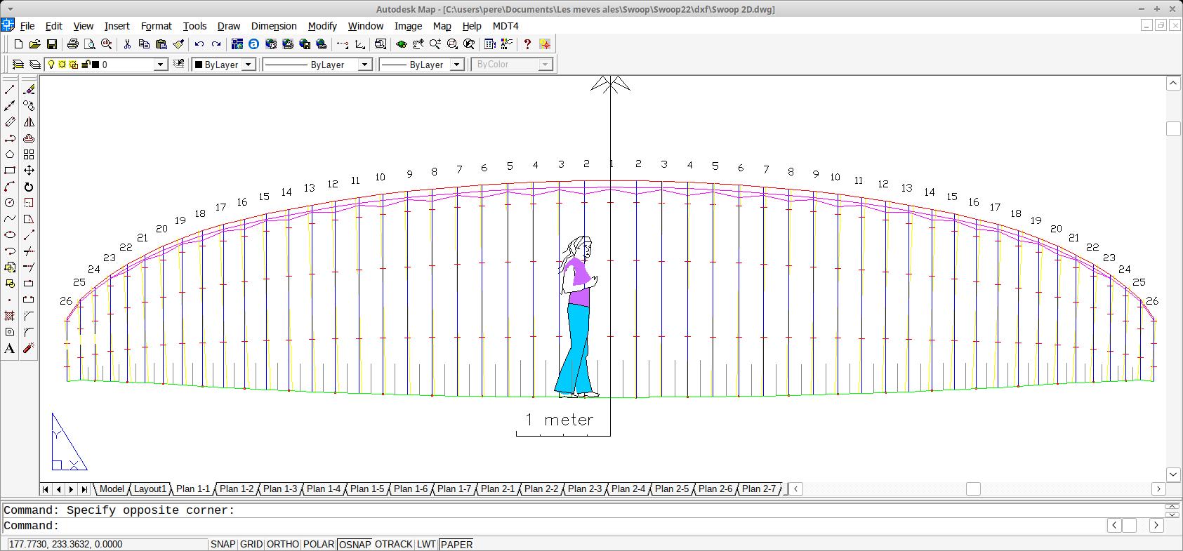Swoop parakite is a 6.10 aspect ratio, 50 cells, true three-liner, reflex parakite (new gnuReflex airfoil). Developed jointly by Pere Casellas and Tim Weber. Prototype no. 1 is currently under construction by Tim Weber. Plans available in initial size 18 m2.