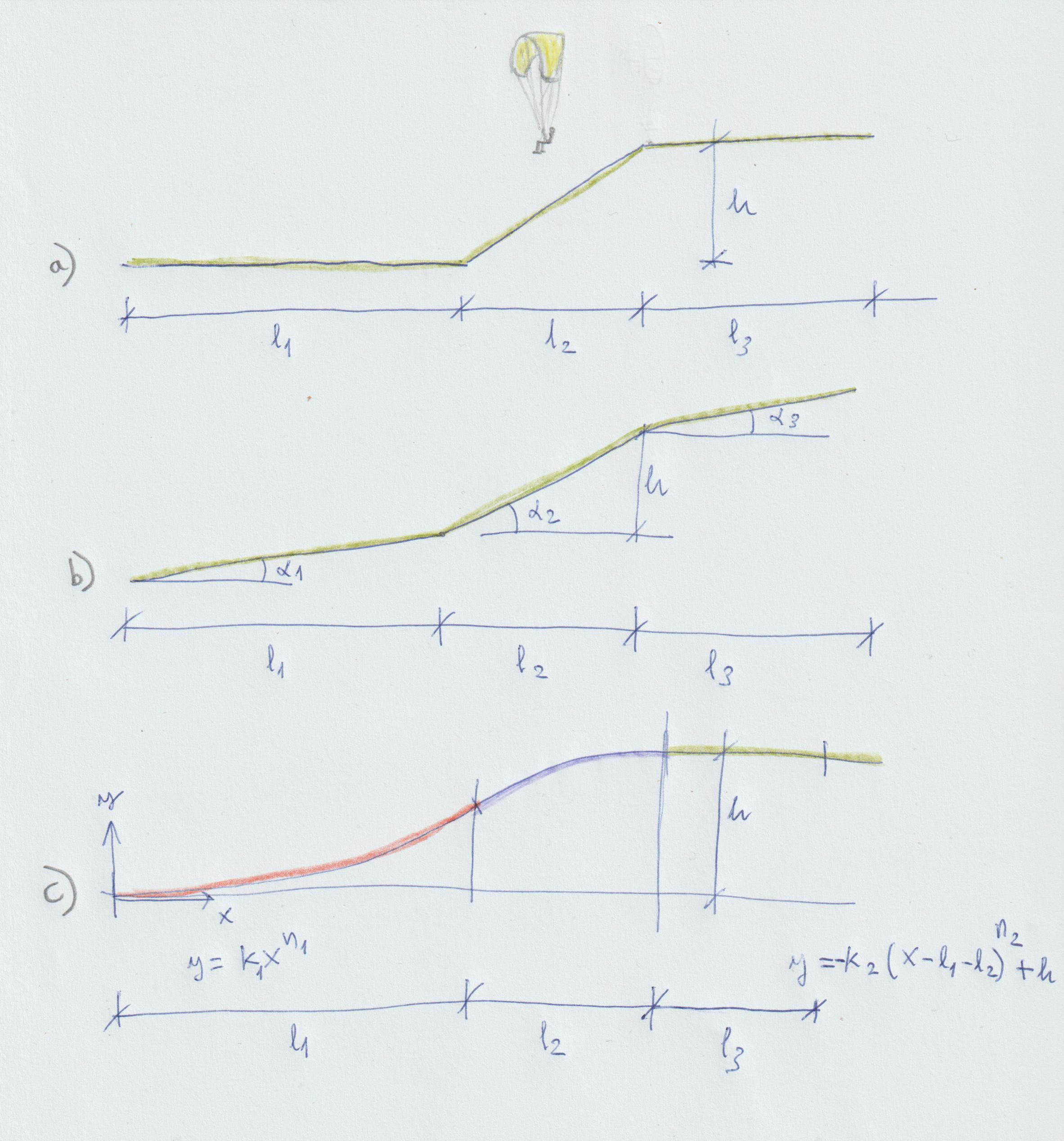 slightly inclined terrain with an angle alpha_1 in the landing zone and